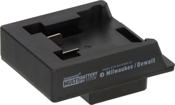 The brennenstuhl® Adapter in the brennenstuhl® Multi Battery 18V System for use with Milwaukee/Dewalt batteries is designed for use with 18V batteries in one of the Multi Battery LED construction spotlights. Simply attach the adapter, insert the appropriate battery and get started – the adapter can be inserted into the brennenstuhl® interface on the work spotlight in a single step. The interface technology allows for maximum flexibility and offers the advantage of being able to use the battery system of your choice. The adapter also has the following impressive features:
