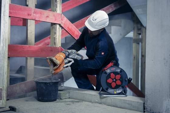- Greater flexibility on the construction site: for the first time, these high-quality cable reels for professional use feature 5 splash-proof earthed sockets (IP44) instead of 4
