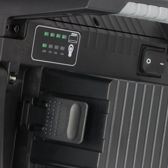 - The LED battery-powered construction spotlight 3000 MA can be used with just one hand and is compatible with 10 outstanding Powertool 18V battery systems