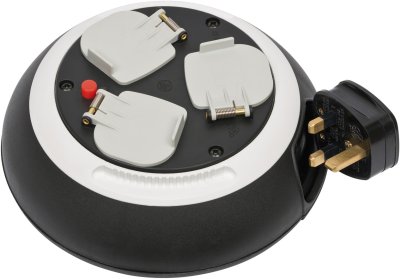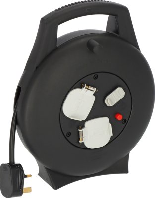 A garden cable reel differs from a normal cable reel in that it only has one connector instead of a socket insert and a coupling at the other end.