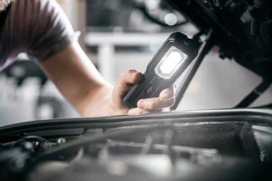 The powerful, handy and compact LED Work Light with integrated rechargeable battery is perfect for robust use in workshops, in the automotive sector or for various outdoor activities thanks to its IP54 protection rating (dust and splash-proof). Thanks to the infinitely variable dimming function (10 to 100%), the LED Torch has a particularly long lighting time of up to 10 hours. The Inspection Light is charged via the USB C charging interface and using the USB C charging cable supplied. The Camping Torch also impresses with the following features: