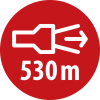 - Lumière principale à 100% : 530m / à 33% : 280m / Flash 250m.