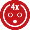 - 4 prises de courant 2P+T 16A/230V~ avec clapets à fermeture automatique