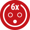 - 6 prises de courant 2P+T 16A/230V~ avec clapets à fermeture automatique