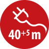 - Bobine latérale située à l'arrière avec 5m de câble équipé d’un clip de fixation pour assurer son maintien pendant le transport, relié à la fiche pour faciliter le branchement sur la prise fixe