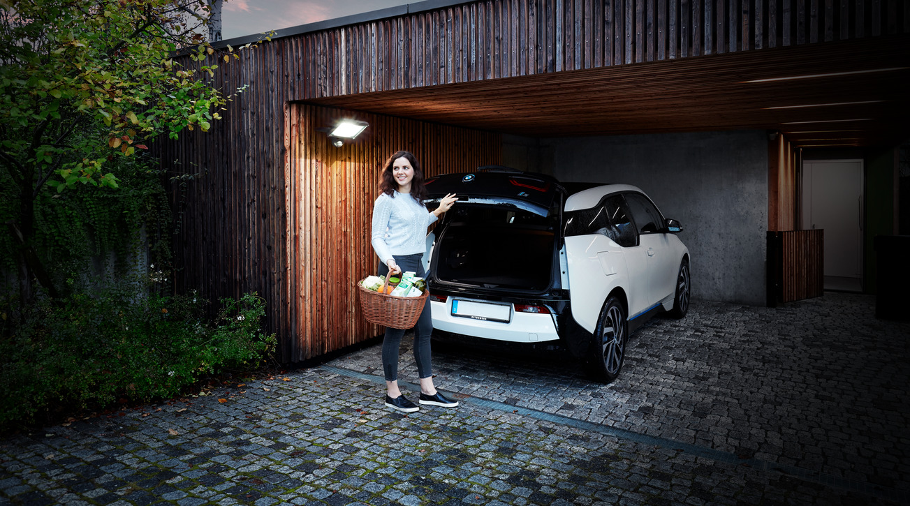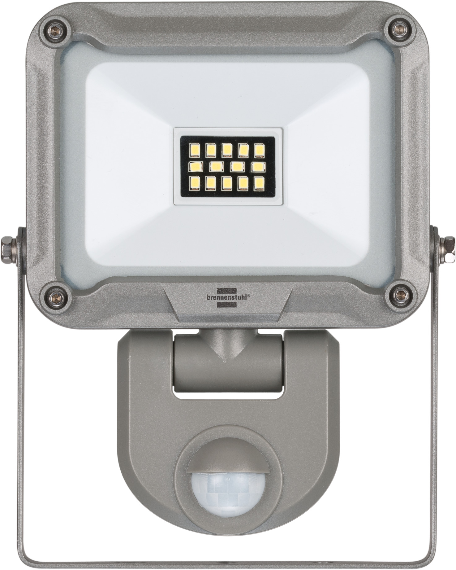 The LED Light JARO 1050 P with PIR sensor for wall-mounting is an extremely energy-efficient LED floodlight with 10W output that meets the highest demands. Due to the IP54 protection class (Dust-protected and protected against splashing water), a housing made of high-quality aluminium and a safety glass for additional shock protection, the floodlight with sensor is perfectly suited for outdoor illumination. The motion detector with adjustable twilight switch can be rotated horizontally and vertically and automatically triggers light at a detection range of up to 10m and a 120° angle of detection. The light duration can be adjusted from 10 seconds to approx. 5 minutes. The 15 installed Everlight SMD LEDs ensure an long lifetime and their special light diffusion for large-area illumination. The motion sensor provides ideal, automatic illumination of entrance areas, driveways or carports, for example, thereby increasing safety. The security light with sensor also has the following features: