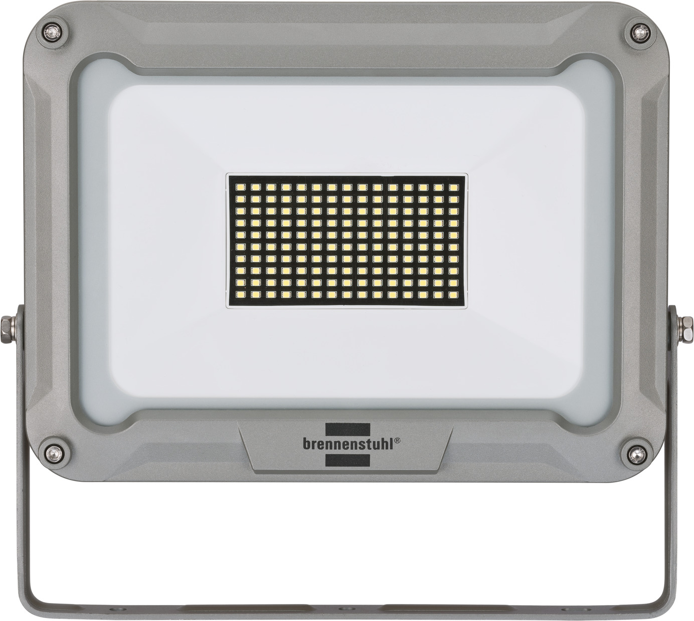 The LED light JARO 9050 for wall mounting is an extremely energy-efficient LED floodlight with 100W output that meets the highest demands. Due to the IP65 protection class (dust-tight and protected against water jets), a housing made of high-quality aluminium and a safety glass for additional shock protection, the floodlight is perfectly suited for outdoor illumination. The LED outdoor spotlight also impresses with its extremely flat design and robustness. The 168 installed Everlight SMD LEDs ensure an long lifetime and their special light diffusion for large-area illumination. The waterproof outdoor lighting also has the following features: