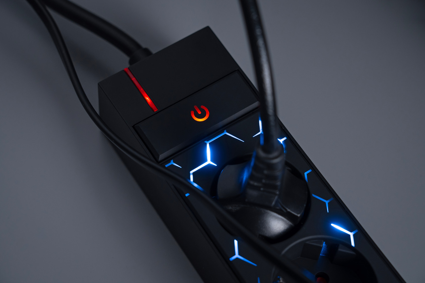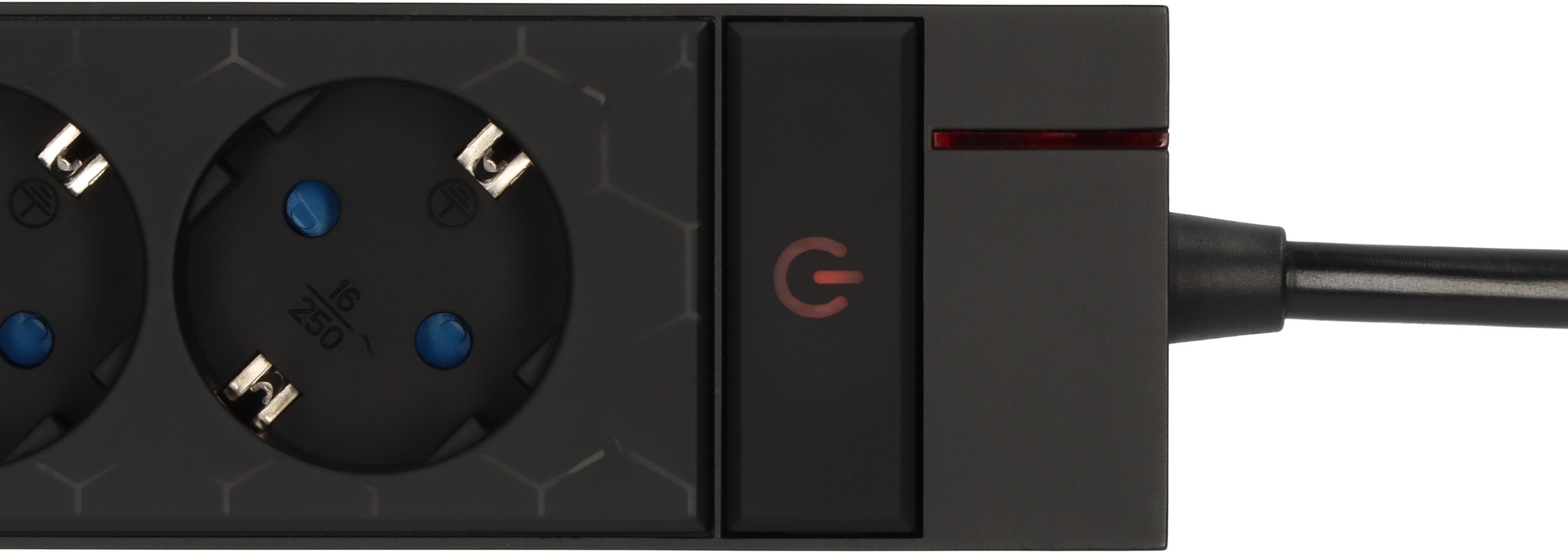 The gaming power strip with switch not only has increased protection against accidental contact, but also impresses with the following features: