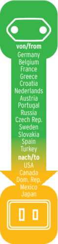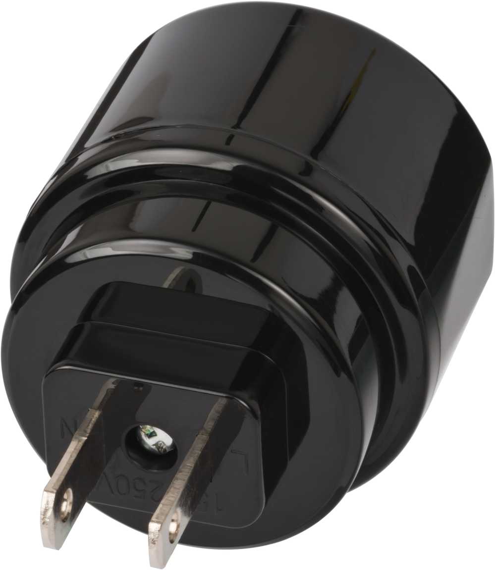Adapter podrózny Euro/USA i JaponiaAdapter do podlaczania urzadzen elektrycznych z 2-biegunowym systemem wtykowych z krajów z systemem wtykowym Euro do USA, Japonii.