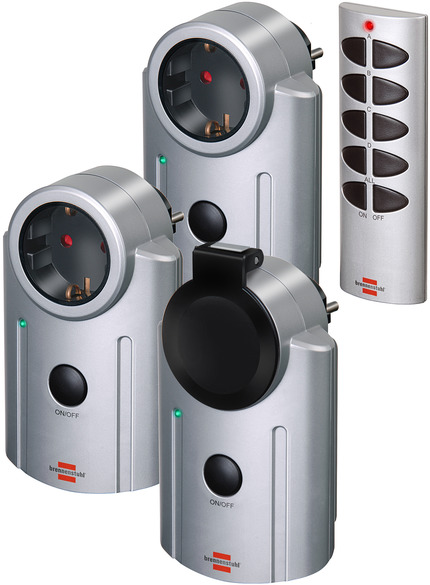 Brennenstuhl Primera-Line draadloze schakelset RC 2044 (3 stuks draadloze contactdozen set voor binnen en buiten, met 1 handzender, IP20/IP44 bescherming en hogere contactbescharming) zilver