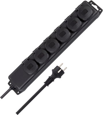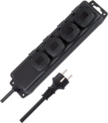 De buitenruimte geldt als een vochtige ruimte, daarom worden buiten alleen geschikte stekkerdozen met beschermingsklasse IP44 of hoger gebruikt.
